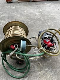 Pompa irroratrice da 1,5 cv elettrica con carrello avvolgi tubo (100 metri )più tubo per pesca e due lance usata poco ma funzionante.