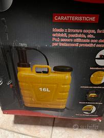 Pompa irroratrice a spalla da 16 litri , usata una sola volta .