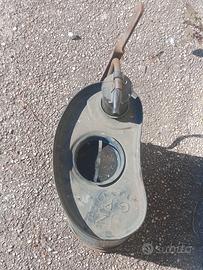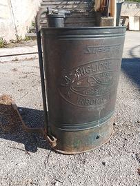 Splendida pompa irroratrice a zaino d'epoca in rame e ottone, pezzo autentico di storia agricola italiana. Dettagli: Presenta bellissime scritte in rilievo: "La Migliore Pompa Irroratrice" e marchio "Superiore". Punzonata con brevetto G.A.N. Condizioni: Ottima patina originale del tempo. Struttura solida e integra, completa di leva manuale e tappo superiore con filtro originale. (Vedi foto per i dettagli dell'ossidazione naturale del rame). Dimensioni: [Inserisci qui l'altezza e la larghezza approssimative]. Uso: Perfetta come pezzo da collezione, elemento d'arredo per giardini, portico o taverne, oppure come base per creare una lampada di design industriale. Spedizione accurata e imballaggio protettivo garantito. Magnifique pulvérisateur à dos ancien en cuivre et laiton, une pièce authentique de l’histoire agricole italienne. Détails : Inscriptions en relief d'origine : "La Migliore Pompa Irroratrice" avec la marque "Superiore". Estampillé avec brevet G.A.N. État : Très belle patine d'origine. Structure solide et complète avec son levier manuel et son bouchon avec filtre d'origine. (Voir photos pour les détails de l'oxydation naturelle du cuivre). Usage : Idéal pour une collection, comme élément de décoration de jardin, terrasse ou intérieur rustique. Parfait pour une transformation en lampe design industriel. Envoi soigné et emballage de protection garanti. #antiquité #cuivre #décorationrustique #vintage #pulvérisateur #jardin #industriel #loft