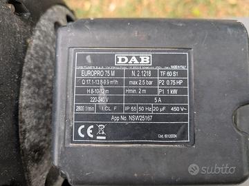 Vendo pompa per piscina DAB europro 75 , derivante da una piscina interrata, l'ho provata per la mia piscina fuori terra ma è decisamente eccessiva. Usata, funzionante con segni ed imperfezioni dovuti all' uso ed alla sostituzione di componenti. Le caratteristiche sono quelle in foto. Oggetto venduto privo di garanzia, visto e piaciuto nello stato in cui si trova. Offro ed esigo massima serietà. Possibile sia spedizione che ritiro di persona previo accordo.