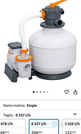 Vendo la pompa per piscina fuori terra con filtro a sabbia, la pompa è stata usata per due stagioni. Tutto in ottime condizioni e funzionante. Compresa di due secchi di sabbia, usata per prova. Cambiata per pompa più grande per mitate esigenze.