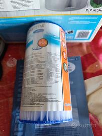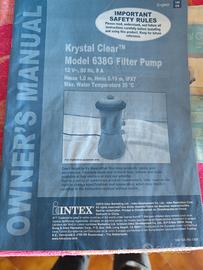 Pompa INTEX per piscina fuori terra modello 28638GS usata per una sola stagione completa di due filtri di cui uno nuovo mai usato, alimentatore trasformatore, istruzioni e tubi di collegamento piscina