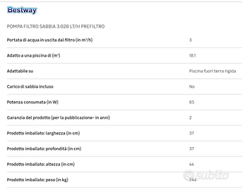 Pompa Piscina NUOVA mai usata
