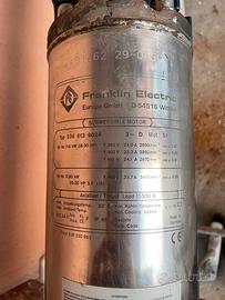 Vendo pompa sommersa Belardi per estrazione acqua da pozzo artesiano di circa 100 metri di profondità. La vendita è dovuta a cessazione attività. La pompa è stata estratta a fine estate ed era perfettamente funzionante al momento della rimozione. Caratteristiche principali: •Motore trifase da 11 kW (15 CV) •Utilizzata con colonna tubi da 2” 1/2 •Ottima per impianti agricoli, irrigazione o uso industriale •Costruzione robusta e affidabile Nota: •Tubi e cavo di alimentazione non inclusi •Disponibili foto dettagliate con caratteristiche del motore elettrico e della girante Consegna: Preferibile ritiro a mano vista la massa e l’ingombro della pompa. Per ulteriori informazioni, contattami senza problemi.