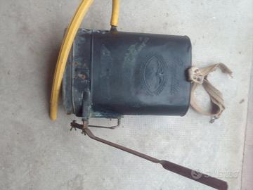 Pompa solforatrice in rame funzionante ma; ha bisogno di essere pulita all' interno e controllata per funzionare bene Marca aquila Universal brevettata Fulvio Bifoli Treviso misure alt.43 larga 30 prof. 17 non è pulita ma con un po'di aceto e sale il rame riprenderà il proprio colore e ritornerà come nuova.adatta anche al collezionismo.