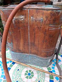 Pompa irroratrice per verderame di Urania Abbiategrasso. Originale in tutti i materiali e pezzi. Costruita in rame ed ottone. Capacità 10 litri. Funzionante e conservata in ottime condizioni.