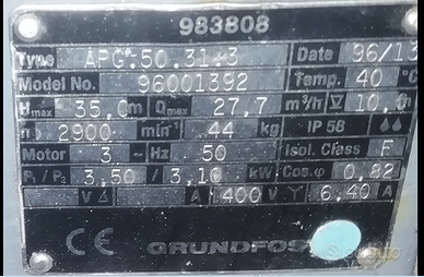 APG 50.31, volt 380 trifase, kw. 3,10, amp. 6,40- capacità , metri cubi ora, 27,70 - prevalenza in altezza, metri 35.-al prezzo cadauno di euro