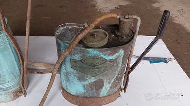 vendo in blocco 2 pompe irroratrici in rame vintage non funzionanti marca volpi per arredamento giardino o altro