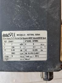 Per cambio tipologia piscina Vendo 2 Pompe piscina Astral Sena 25461 prezzo 150 € Cadauna, per chi le prende tutte e due regalo filtro a cartuccia (Perde leggermente va revisionato) vari raccordi e Faro da piscina. Solo ritiro a Castelfidardo o spedizione a carico dell'acquirente.