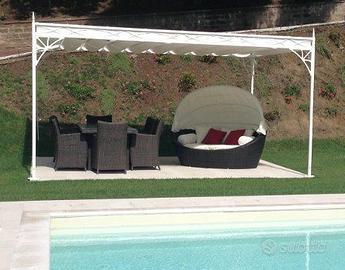 Elegante pompeiana da giardino modello Liberty con struttura ornamentale in acciaio zincato e verniciato e copertura a scorrimento manuale in PVC