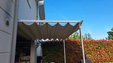 vendo pompeiana con scolo d'acqua su un lato, addossata, retrattile in pvc, colore bianco panna , misure h270, 330x236 esterno +80 interno. Disponibile da subito. Smontaggio e trasporto a carico dell'acquirente.