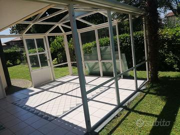 Vendo pompeiana con struttura ferro e vetro. Laterale chiusa in vetro e anche tetto in vetro spessorato. Finestre apribili e 2 porte sempre in ferro e vetro. Vendo causa inutilizzo. Struttura già in fase di smontaggio.