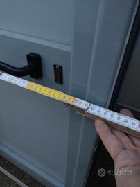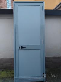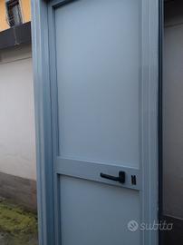 Vendo porta in alluminio grigio antracite e bagalite per esterni e ripostiglio, non ha difetti estetici è praticamente nuova con telaio con perni regolatori sul telaio