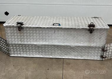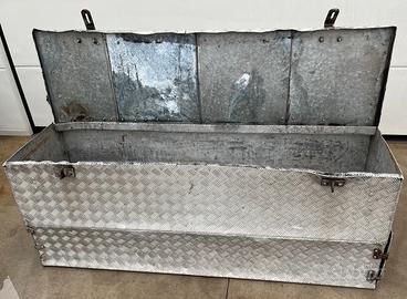 Porta attrezzi in acciaio con la possibilità di essere fissato sopra un cassone di un furgone. Apertura in 3 lati e la possibilità di essere chiuso con i lucchetti.