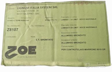 Modello:START-C TERM 900X2100 (dimensioni standard 90 cm x 210 cm). Riferimento Prodotto:Z8107. Materiali e Finiture: Pannello Interno ed Esterno:Laminato S6 LM07 - Noce Nazionale. Accessori (Interni ed Esterni):Alluminio Bronzato. Colore Telaio:Per controtelaio marrone 8019 GR. Apertura:Spingere DX (Destra Completa di tutti gli accessori e controtelaio.