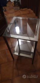 Elegante espositore che può essere utilizzato come portabottiglie, piante o altri oggetti. Ideale x open space e loft. Piano superiore in vetro trasparente. Struttura in metallo color oro. Ripiano intermedio in vetro. Ritiro sul posto, non SPEDISCO.