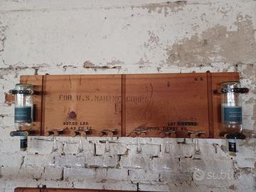 - Vendo portabottiglie e bicchieri ingegnosi e originali, fatti con casse della seconda guerra mondiale, esercito americano, Come fermagli sono state utilizzate cartucce vuote da caccia.