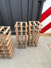 Vendo porta bottiglie in legno e metallo , 2 da 30 bottiglie , 2 da 18 bottiglie , 2 da 12 bottiglie , usati ma in ottimo stato .