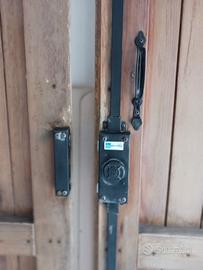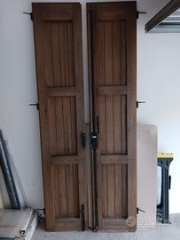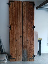Vendo porta due ante in legno. Misure H cm233,5;L cm 90 spessore cm 5.5, compresi perni per fissaggio, serratura marca Mottura,con 3 chiavi originali.
