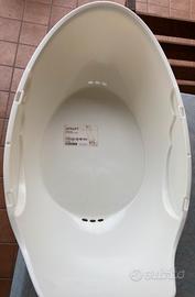 Porta giochi in plastica bianca Ikea, a forma di papera. Utile per riporre i giochi del bagnetto