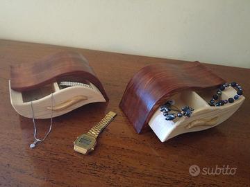 Porta Gioielli Artigianali in Legno Nuovi, rifiniti accuratamente a mano ... Nuove e Bellissime Idee Regalo ... ... Originali ed Eleganti Bomboniere per qualsiasi Evento o Cerimonia ... ...... Particolari Porta Fedi ....... ... Soprammobili Portaoggetti d'arredo per la tua Casa ... Misure : 18,5x8,8x9 cm. - 25 Euro il SINGOLO. - 40 Euro la COPPIA.
