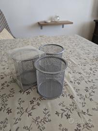Vendo elegantissimi portapenne in metallo con trama a maglia intrecciata. Disponibili 3 pezzi di cui uno ancora con la confezione originale mai usato