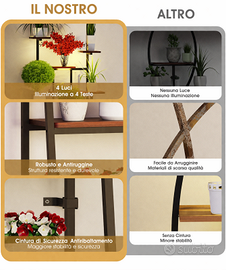 Vendo porta piante moderno con luci LED integrate, perfetto per arredare casa, balcone o ufficio in modo elegante 🌿✨ Design unico a più livelli con 8 ripiani che permette di esporre diverse piante, fiori o decorazioni. Le luci LED a spettro completo aiutano anche la crescita delle piante, ideale per uso interno. ✔️ Struttura stabile in metallo e legno ✔️ Ruote con blocco per spostarlo facilmente ✔️ Design salvaspazio, perfetto per ogni ambiente ✔️ Adatto per interno ed esterno coperto ✔️ Montaggio semplice 📏 Altezza circa: 150+ cm 📦 Condizione: Nuovo