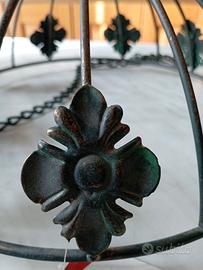 Vendo due grandi porta piante nuovi come si può vedere dalle foto,da appendere con catena e gancio in ferro nero con decori anticati. La misura è di 30 cm. Per entrambi ,adatti per ambienti rustici, porticati, balconi.