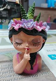 porta piantina grassa bimba/gattino soprammobile dipinta a mano