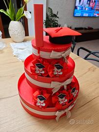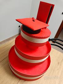 Porta sacchetto laurea fatto a mano rosso, usato solo una volta per laurea. Come nuovo. Senza sacchetti perché personali. Cartone e tessuto.