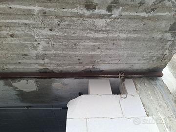 Porta scorrevole garage in ferro esterna con barra binario superiore con 2 carrelli. Misure: - Larghezza 2,48 metri - Altezza 2,60 metri Lunghezza barra guida lineare binario circa 6 metri