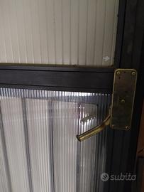 Vendo porta scorrevole in acciaio verniciato composta da tre settori di dimensioni 224x96 con apertura a pacchetto .a seconda dell’utilizzo occorre fare delle piccole modifiche. Si possono montare o una porta da 96 o due arrivando alla larghezza di 192.