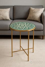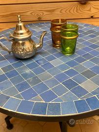 Lavabo marocchino blu con cerchi dorati e bordo in rame – su ordinazione (25 a 50 cm)