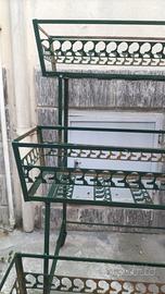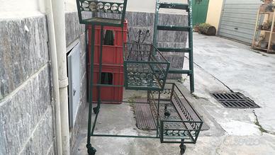 portavasi portafiori fiori piante, con ruote, colore verde in ferro. trattato prima con Ferox, poi antiruggine arancione, poi vernice verde