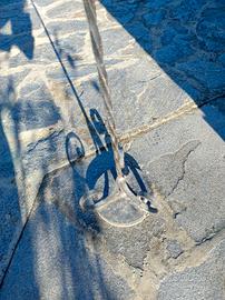 Vendo vecchio porta lanterna/vaso da appendere in ferro con base in pietra