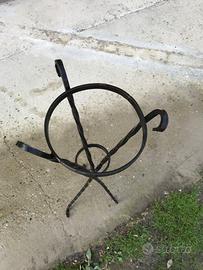 Porta vaso tre piedi in ferro battuto. Alto 83 cm
