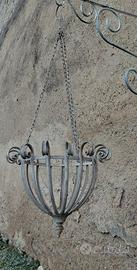 Realizzato interamente in metallo, completo di catene originali per la sospensione è Ideale per ingressi, terrazzi o pareti esterne che necessitano di un punto focale decorativo. Come visibile in foto l'articolo presenta segni del tempo e di usura che ne testimoniano l'autenticità. La superficie necessita di una piccola revisione e di una nuova verniciatura (un'ottima opportunità per personalizzarlo con il colore che preferisci: bianco shabby, nero classico o verde salvia!).