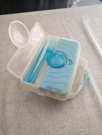 Vendesi 4 porta vivande ermetici completi di siberina, posate, saliera e oliera. 5 euro il pezzo.