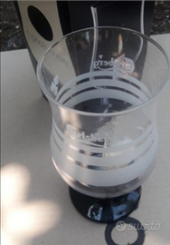 Portacandela con candela, tutto in confezione originale, in vetro trasparente con fasce bianche satinate, su una base in vetro nero lucido. Della BIRRA CARLSBERG. Pubblicitario. Nuovo. Contattami. No Paypal