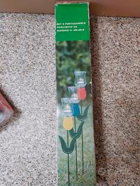 Portacandele paravento da giardino, nuove, mai usate. A forma di tulipani, cm 49,5. In confezione originale.