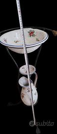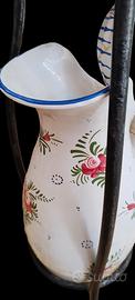 Vendo usato in buono stato il Portacatino in ferro battuto verniciato nero decorato con pomoli in ottone, accessori in ceramica Anfora è stata incollata poiché si è rotta, come da foto (h cm 83xd cm 40)