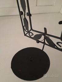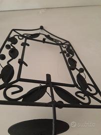 Portacero o candela in ferro vintage, colore nero,con la possibilità di inserire foto o immagine,con decori di foglie, misure ingombro totale 32x16.