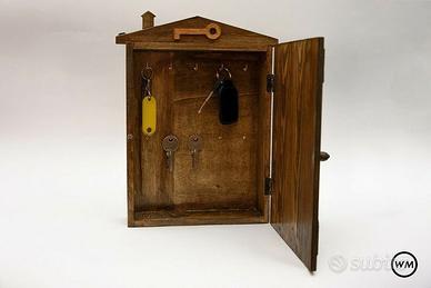 Portachiavi da parete muro casa in stile rustico/vintage con porta a Z (come facevano una volta per non far storcere il legno), realizzato interamente a mano in legno di abete e multistrato. Dotata di 10 ganci opportunamente distanziati per ospitare chiavi e portachiavi.