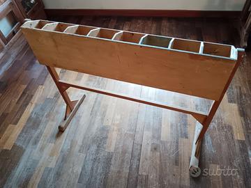 Un curioso e affascinante portabottiglie e flaconi da studio di restauro o di artista, realizzato nella prima metà del XX secolo in legno chiaro. Questo oggetto può essere reinventato anche come portabottiglie per un tavolo da pranzo, o di utilizzo in cucina o per la camera di uno studente, per gli amanti degli oggetti curiosi e carichi di sapore. Si presenta come in foto, solido e ben conservato. Misure: 96x35 x H.79 cm E’ richiesto unicamente il ritiro. Grazie.