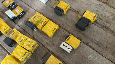 Vendo lotto di componenti per impianti elettrici civili: portafrutti, telai di supporto interruttori, prese e fusibili.