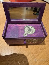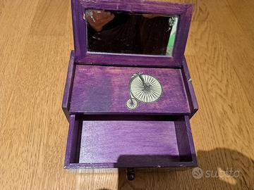 Vendo Portagioie in legno completo di specchio e cassetto Colore viola Dimensioni 21x12 H11 cm circa
