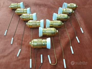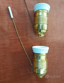 Vendo portalampada in ottone con ghiera in ceramica attacco E27 con interruttore a catena in metallo vintage (vedi foto), nuovo mai usato e funzionante.