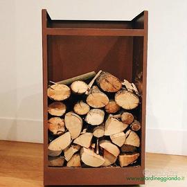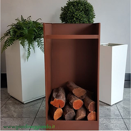 Portalegna da esterno in acciaio corten con ruote a scomparsa – misure cm. 45 x 45 h 45 – misure cm. 45×45 h 100 Disponibile in versione verniciata a polvere con colore RAL a scelta (anche "effetto corten"). Misure anche personalizzabili. Per maggiori informazioni visiti la nostra e-commerce: Giardineggiando o ci contatti al 049 2329515.