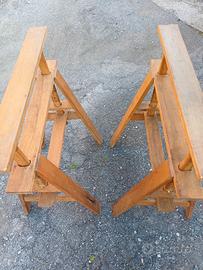 Coppia di capre portaoggetti o gambe per tavoli da lavoro pulite e pitturate di recente,di altezza regolabile.