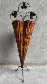 Portaombrelli Cuore In Vimini Intrecciato e Ferro Battuto Vintage Portafiori. In ottime condizioni. Misura: 20x25x h90 cm